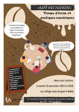 Évènement organisé le mardi 18 novembre 2025 à 17h30 au collège et à destination des parents d'élèves de CM1, CM2 et 6ème. Venez nombreux !