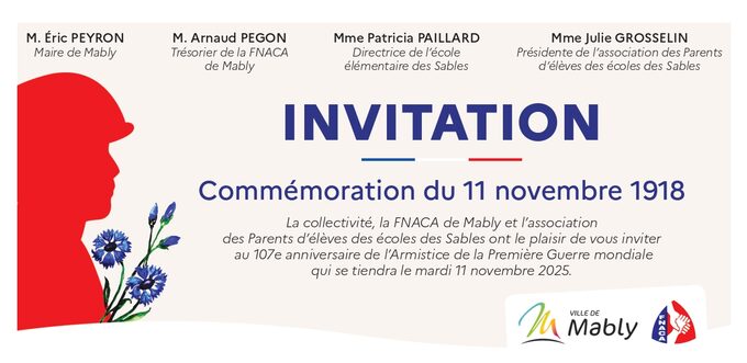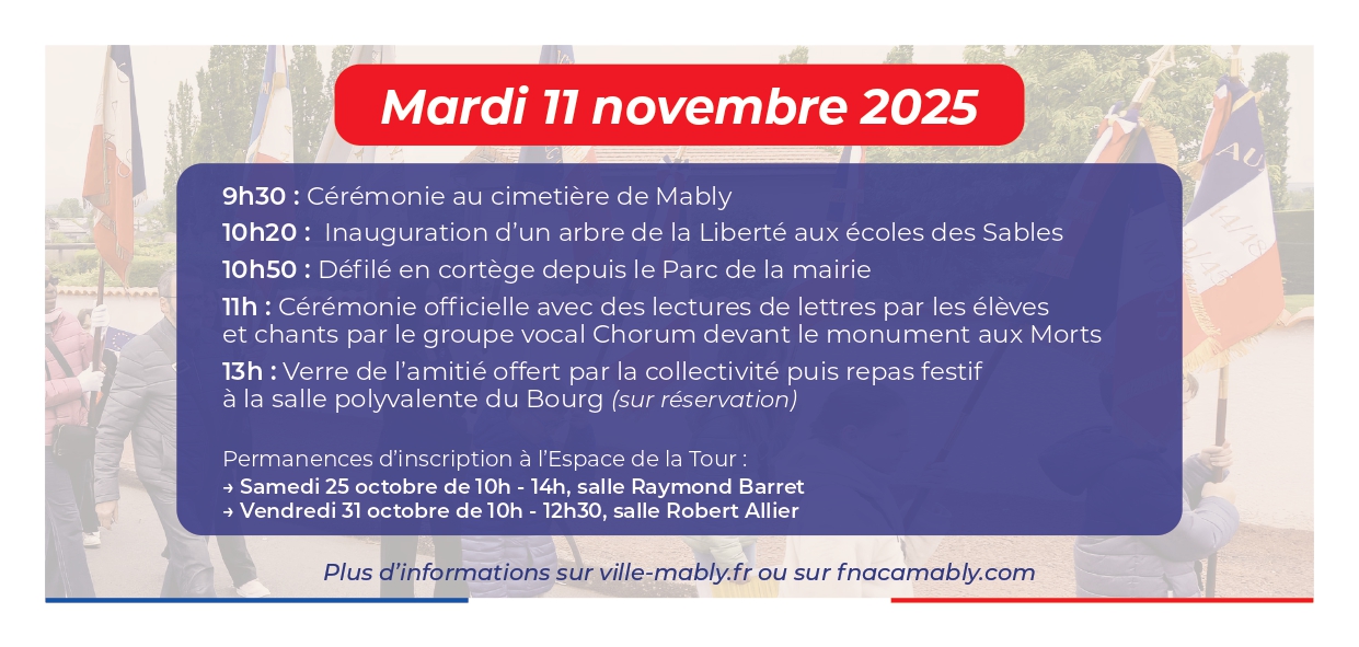 En pièce jointe, le programme de la commémoration du 11 novembre organisée par la ville de Mably.
